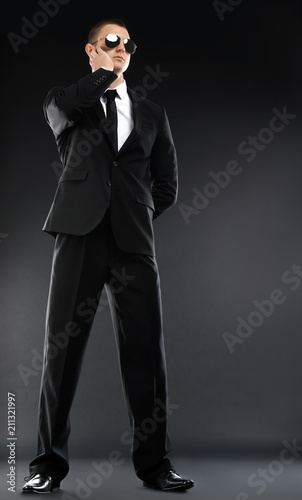 Premium Vector Security Guard Or Bouncer In Black Suit And Sunglasses