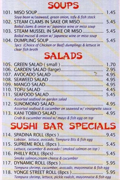 Simon Sushi Menu Menu For Simon Sushi Kensington Chinatown Toronto