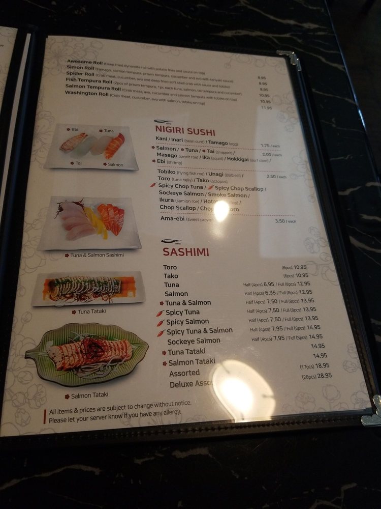 Menu Picture Of Khin S Sushi Richmond Tripadvisor