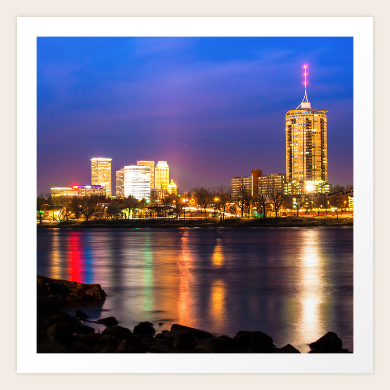 Tulsa Oklahoma River Skyline At Night 1x1 Art Print By Gregoryballosfineart Society6