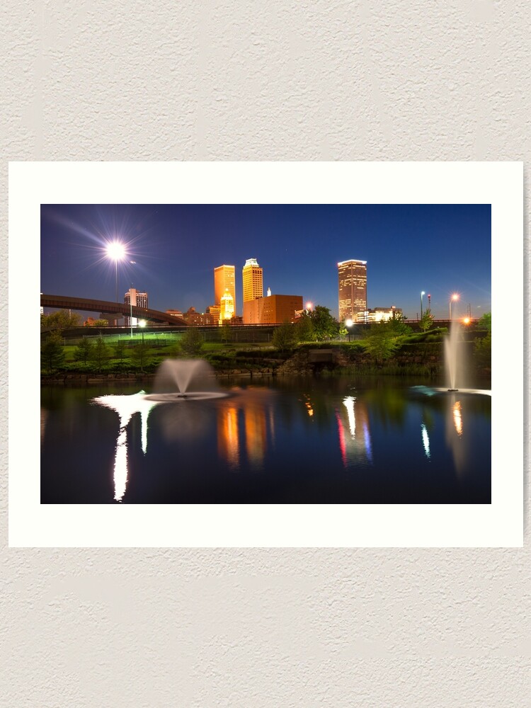 Tulsa Oklahoma Night City Skyline Reflections Art Print By Enjoysshooting Redbubble