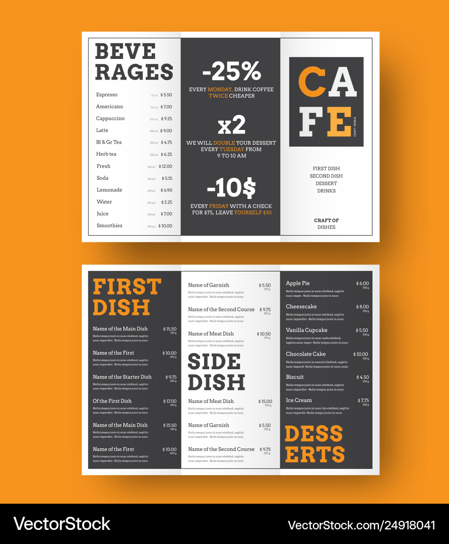 Design A Trifold Menu For Cafes And Royalty Free Vector
