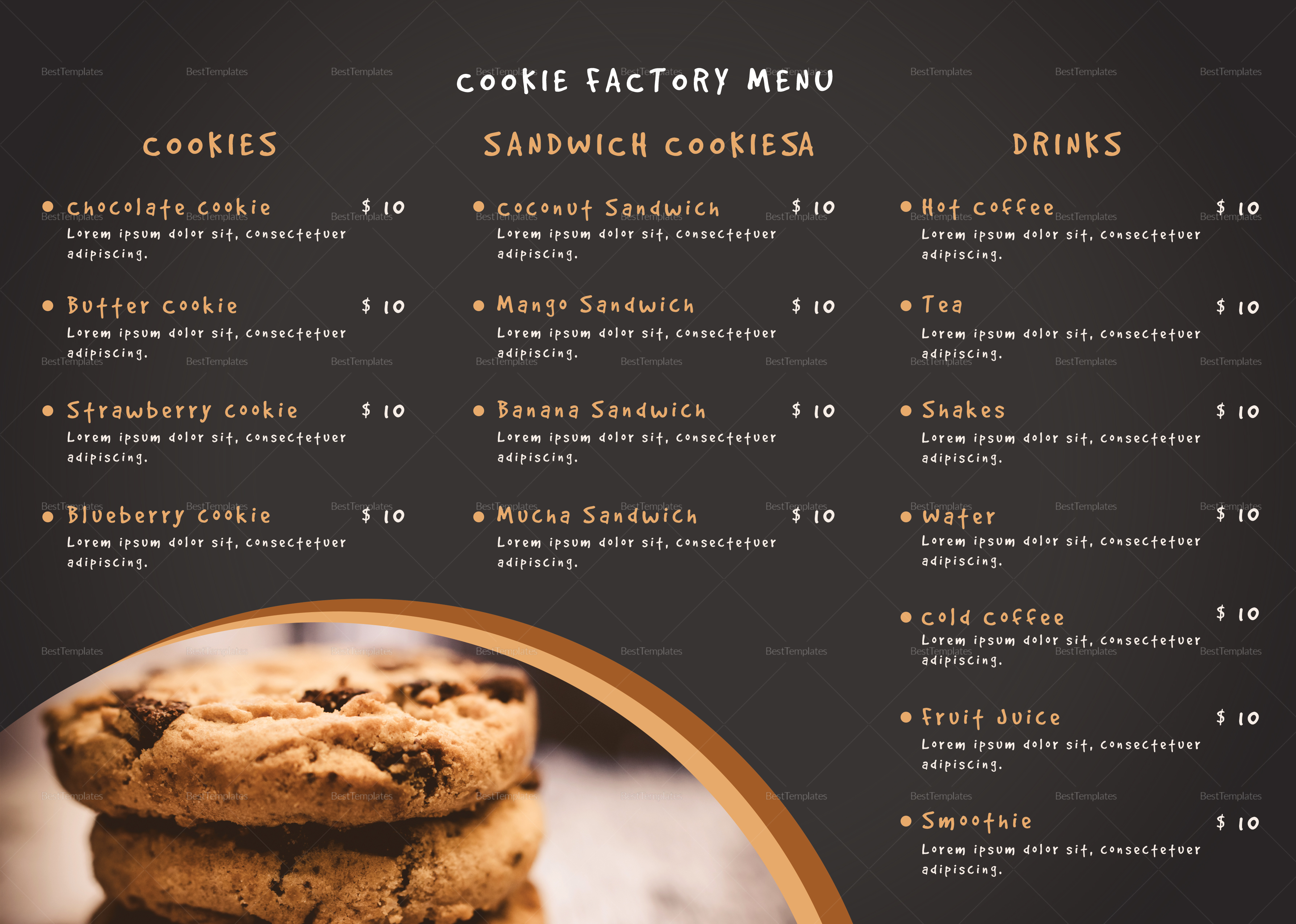 Cookie Shop Tri Fold Menu Design Template In Psd Word Publisher Illustrator Indesign