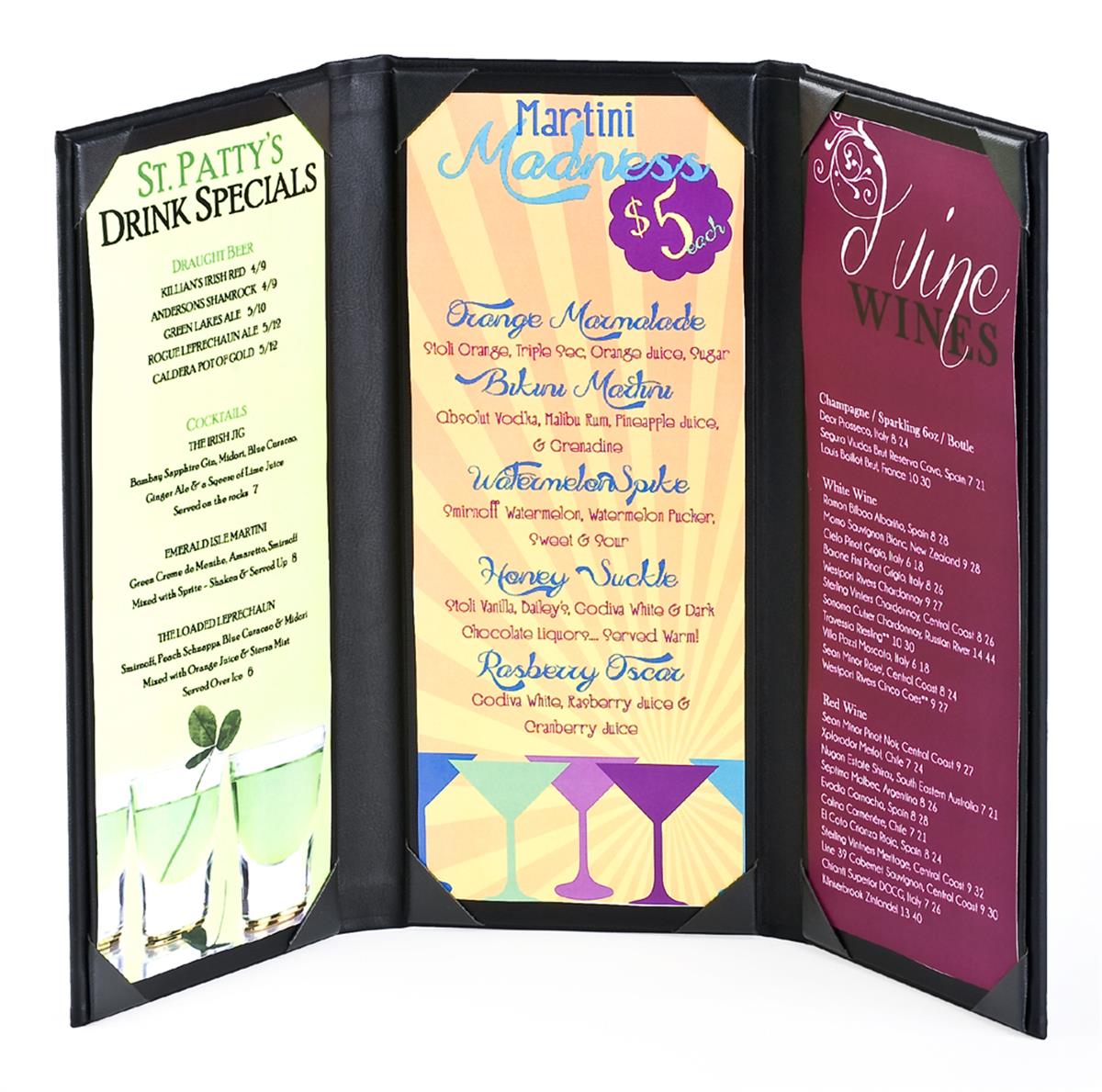 Bar Menu Covers Holds Up To 3 Pages Black