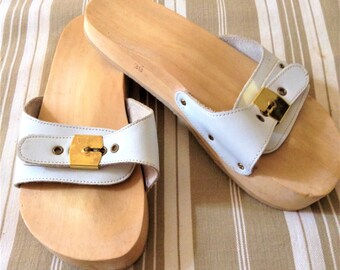 Sandals 8 5 Original Wood Dr Scholl S Slip Ons 70s Shoes Slides 70s Shoes Latest Shoe Trends Popular Shoes