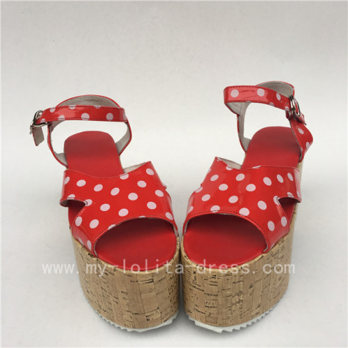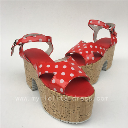 Beautiful Red With White Dots Lolita Sandals With Wood Soles 59 99 Footwear