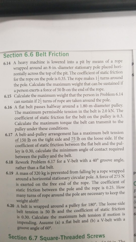 Solved Section 6 6 Belt Friction 6 14 A Heavy Machine Is Chegg Com