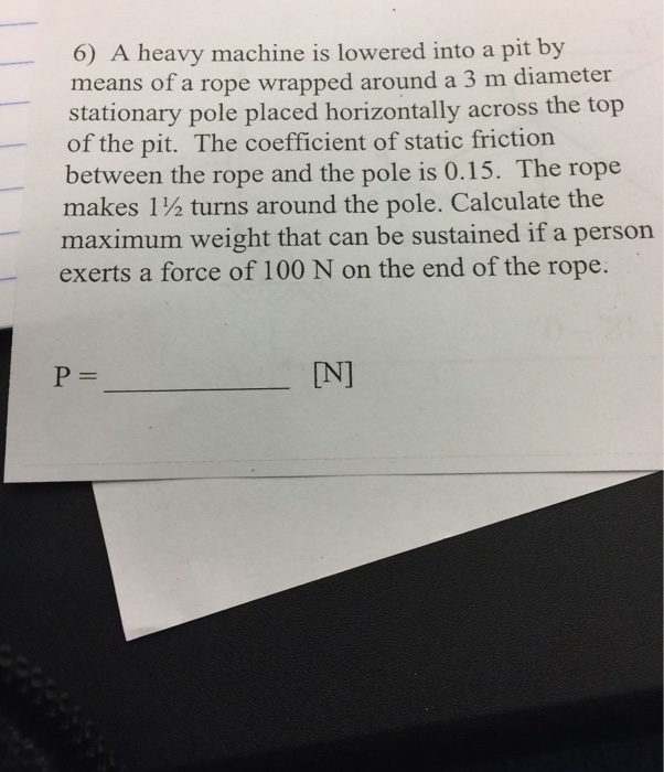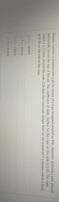 Solved 6 A Heavy Machine Is Lowered Into A Pit By Means Chegg Com