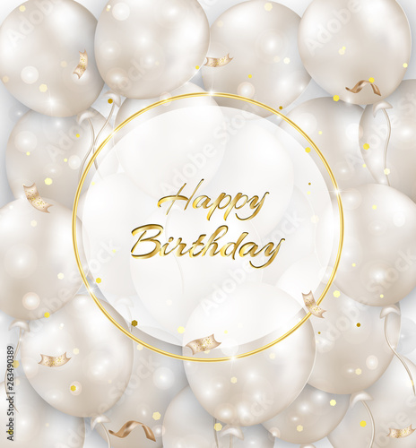 Free Vector Golden And White Realistic Happy Birthday Balloons Background