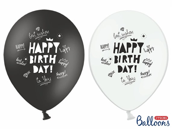 10 Happy Birthday Balloons Black And White Party Balloons Etsy