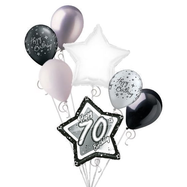 7 Pc 70th Elegant Star Happy Birthday Balloon Bouquet Decoration Black White Walmart Com Walmart Com