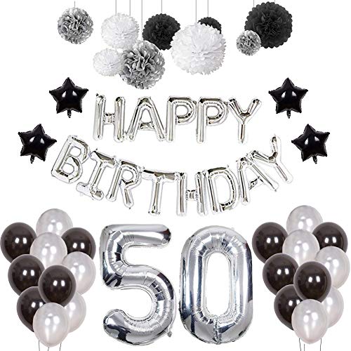 Puchod 50 Birthday Decorations For Men Happy Birthday Balloons Party Supplies Set Foil Latex Balloons Banner Black White Silver Paper Pom Poms Buy Online In Cayman Islands At Cayman Desertcart Com Productid