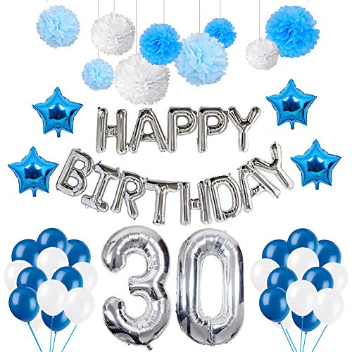 30 Birthday Decorations Puchod Happy Birthday Balloons Party Supplies Kit Blue White 30 Latex Balloons Foil Star Balloon Paper Pom Poms For Men Buy Online In Cayman Islands At Cayman Desertcart Com Productid
