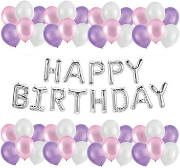 Bash N Splash Solid Pink Purple White Silver Happy Birthday Princess Party Balloon Set Of 60 Pcs Balloon Balloon Flipkart Com