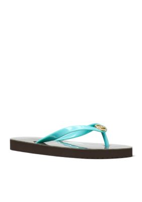 Michael Michael Kors Mk Flip Flop Thong Logo Sandals Icy Turquoise Brown Overstock