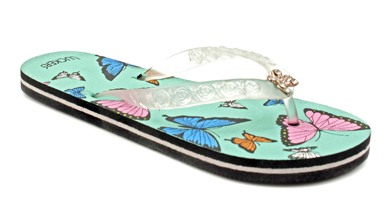 Luckers Women S Awake Butterflies Flip Flops In White And Turquoise Luckers Inc