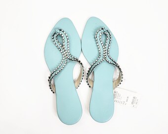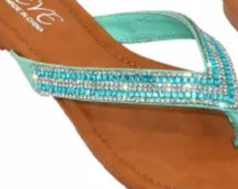Turquoise Gem Stone Flip Flops Sandals Summer Cinderella Slipper Flip Flops
