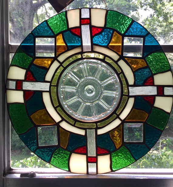 Antique Crystal Top Circle Stained Glass Window Etsy