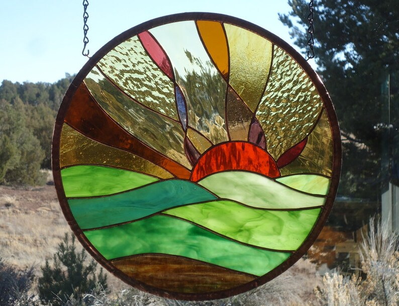 Amazon Com Stained Glass Window Xl 28 Round Wave Tree Moonlight Handmade