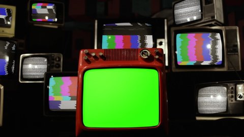 Old Tv Green Screen And Many Retro Tvs Appearing From Black Background By Maradonas Land On Envato Elements