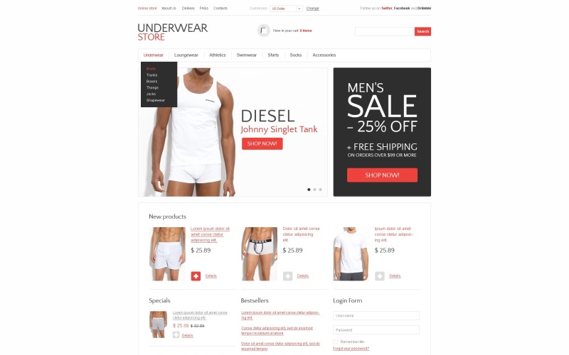 Mens Underwear Virtuemart Template