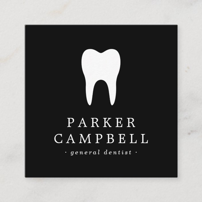 Elegant Black And White Tooth Dentist Dental Square Business Card Zazzle Com