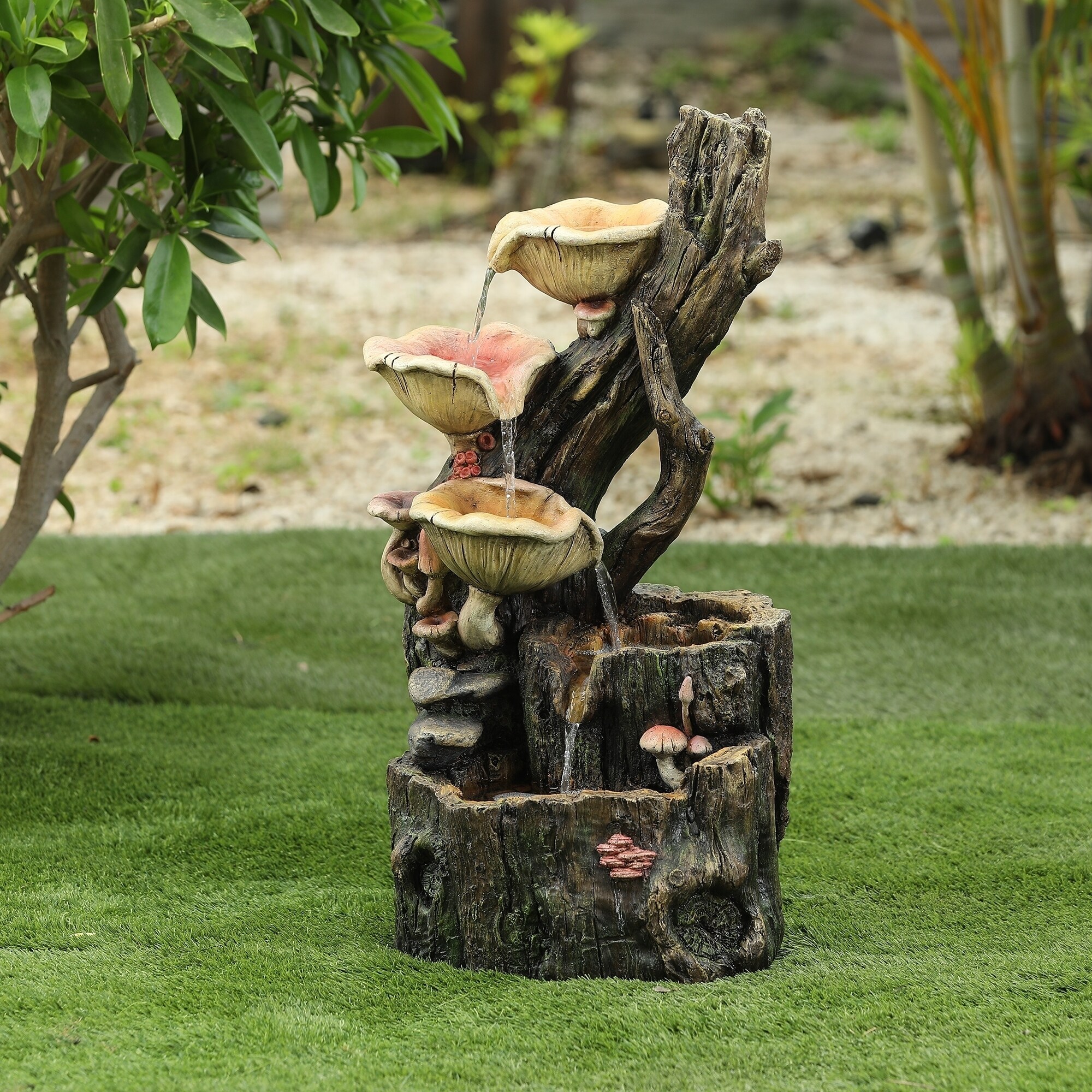 Resin Tree Stump And Mushrooms Outdoor Fountain Overstock