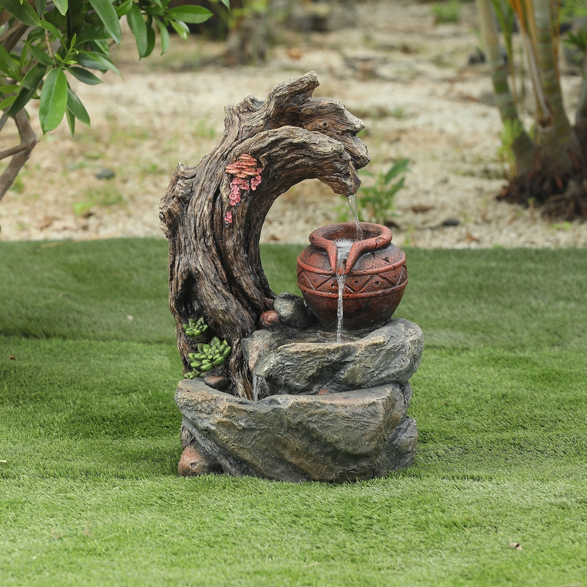 Resin Tree Stump And Rock Outdoor Fountain Overstock