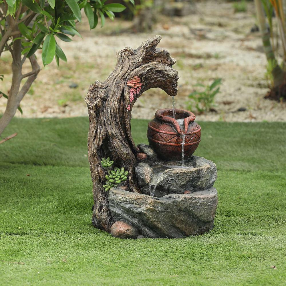 Winsome House Polyresin Tree Stump And Rock Outdoor Cascade Fountain Whf792 The Home Depot