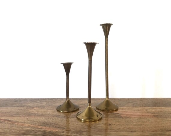 Vintage Candlestick Holders Set Of Three Graduated Brass Etsy