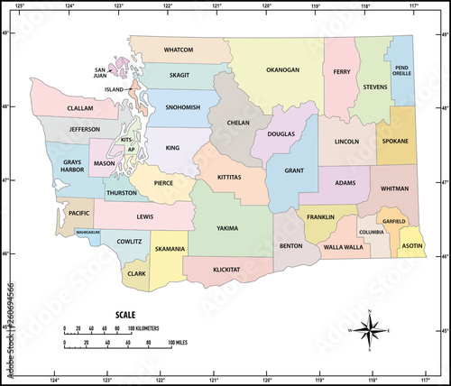 Administrative And Political Vector Map Of The Us State Of Washington Stock Vector Image Art Alamy