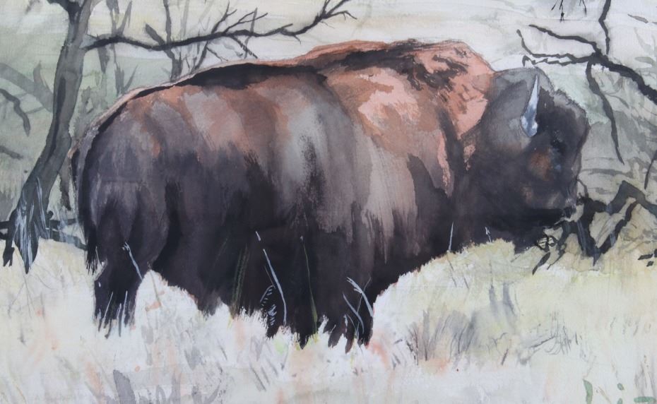 Original Signed Watercolor Buffalo Painting Sold At Auction On 13th July Bidsquare