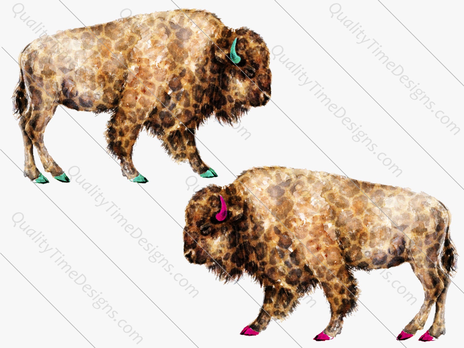 Funky Watercolor Buffalo Clip Art Graphic Images Transparent Background Pink Blue American Buffalo Native