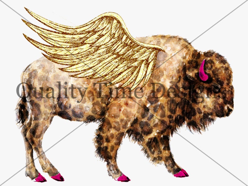 Funky Watercolor Buffalo Clip Art Graphic Images Transparent Background Pink Gold Glitter American Buffalo Native Standard License Included