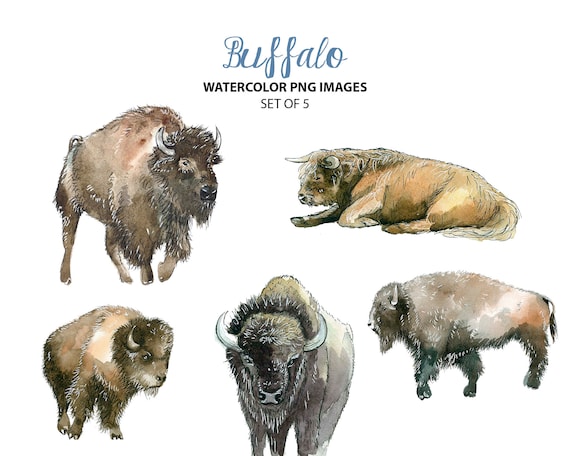 Cute Buffalo Clipart Watercolor Animal Clip Art Nature Etsy
