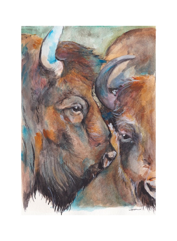 Buffalo Watercolor Buffalo Buffalo Watercolor Art Buffalo Etsy