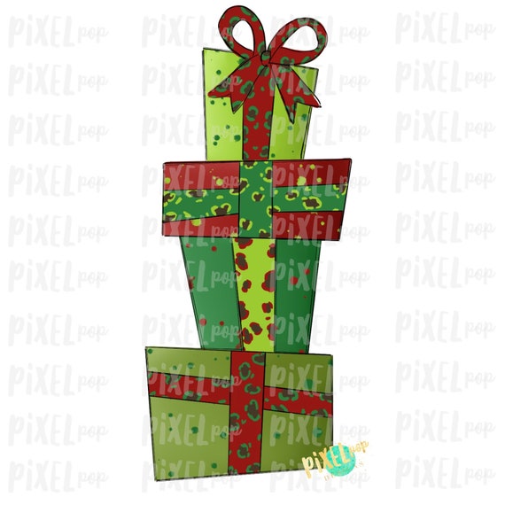Christmas Presents Stacked Leopard Ribbon Sublimation Png Etsy