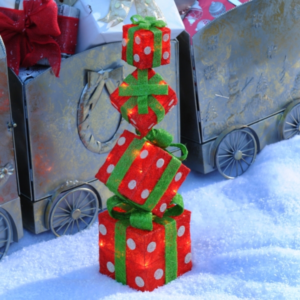 Amazon Com Northlight 45 Red And Green Lighted Sisal Tower Stacked Gift Boxes Outdoor Christmas Decor Furniture Decor