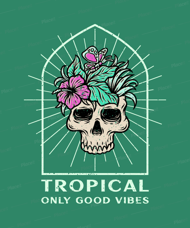 Placeit T Shirt Design Generator Featuring An Illustration Of A Skull With Tropical Plants