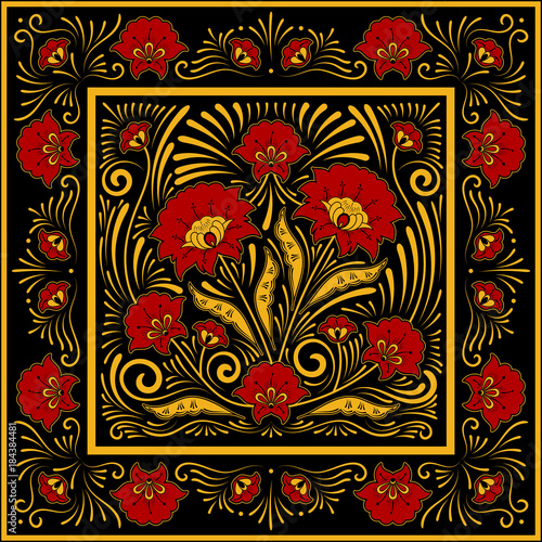 Crafted Folk Floral Pattern Vector Square Scarf Design Flower Silk Batik Print Template For Russian Shawl Ethnic Tablecloth Textile Khokhloma Ornament Casket Persian Rug Vintage Medallion Buy This Stock Vector And