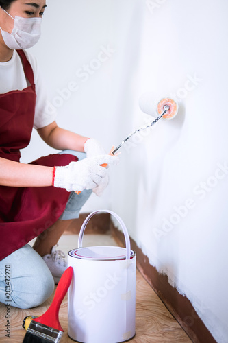 Interior Working Painter Hand In White Glove Painting Wall With Stock Photo C Pattanaphong Khuankaew Freedomz Stockfresh