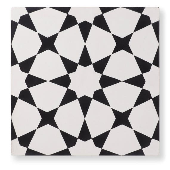 Cement Tile Pattern Estrella Black Etsy