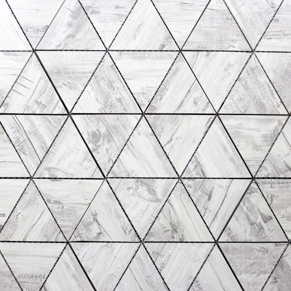 Abolos Handmade Decor Birchwood Gray Wood Look Triangle 4 In X 4 5 In Matte Glass Mosaic Tile 1 Sq Ft Hmdwtjtri Bg The Home Depot