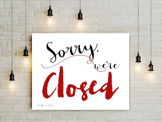 Sorry We Re Closed Sign Instant Download Printable Business Signs Open Signs Closed Signs