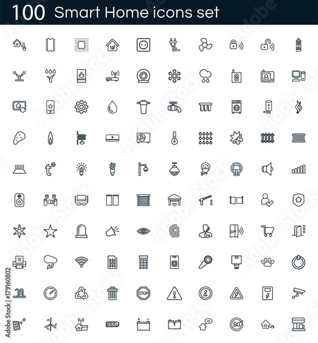 Smart Home Icon Set With 100 Vector Pictograms Simple Outline Icons Isolated On A White Background Good For Apps And Web Sites Buy This Stock Vector And Explore Similar Vectors At