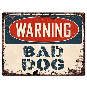 Metal Tin Signs Funny Vintage Personalized 12 Inch X 17 Inch Warning Bad Dog
