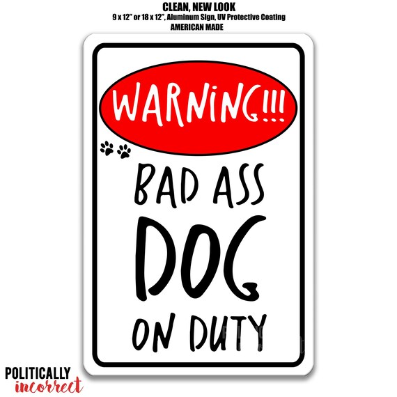Warning Bad Ass Dog On Duty Novelty Metal Parking Sign 9x12 Etsy