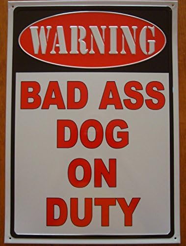 Warning Bad Ass Dog On Duty Metal Sign 18 X 12 Inches