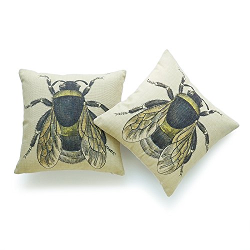 Hofdeco Decorative Cushion Cover Heavy Weight Cotton Linen French Country Vintage Honey Bee Illustration 45cm X 45cm Set Of 2 Buy Online In Aruba At Aruba Desertcart Com Productid