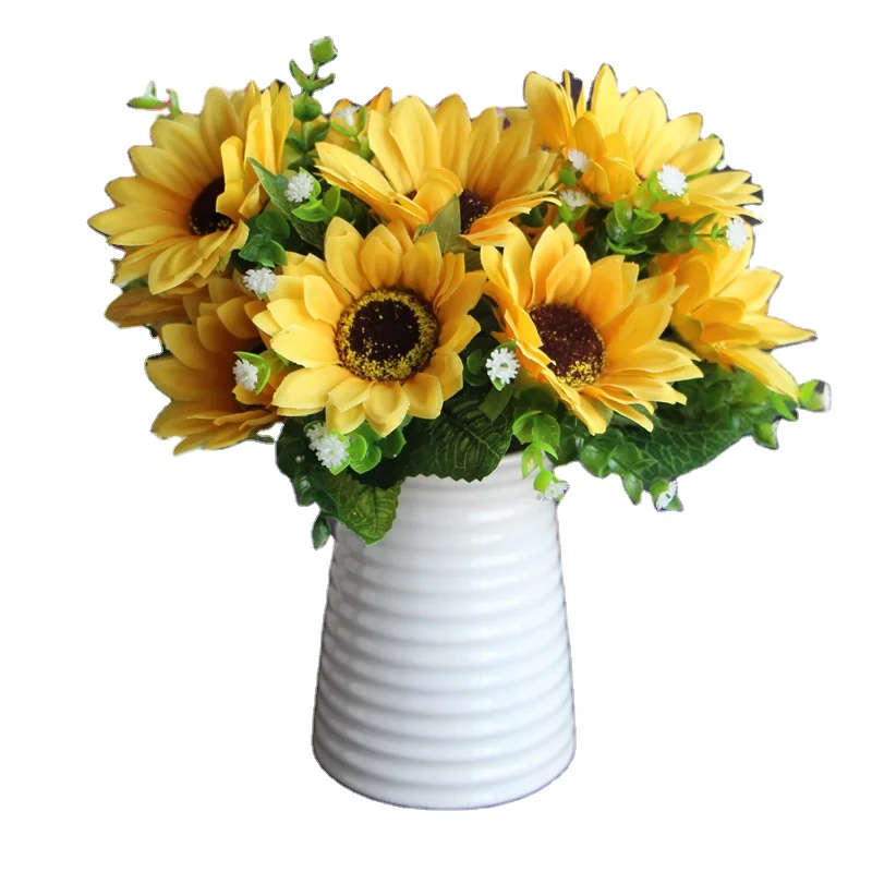 21 Artificial Flowers Yellow Silk Sunflower With 7 Head Wedding Decorative Flower Bouquet Home Decoration Garden Decor 30cm Length From Fatfatshop 0 98 Dhgate Com